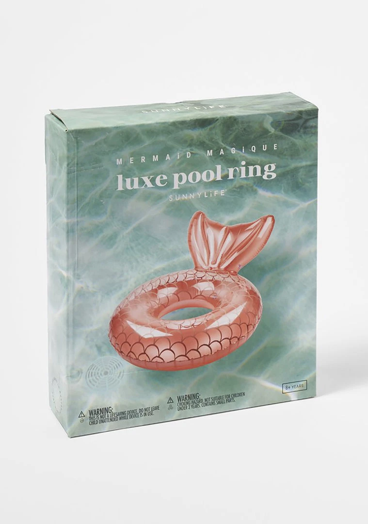 Who wants lets when you can have a tail? Be the under water princess you were meant to be with the Luxe Rose Gold Mermaid Pool Ring from SunnyLife. This luxurious pool float features 0.20mm, non-toxic 6P free PVC, and includes a repair patch in case of punctures. Grab this pool float and relax like the sea goddess you are.
