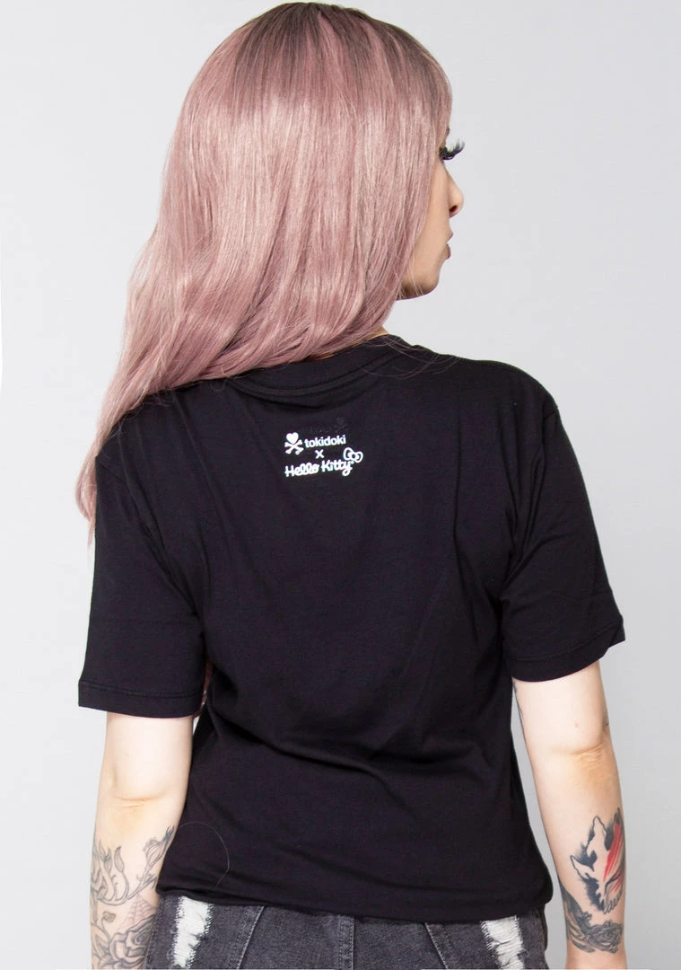 Tear up the town in the Hello Kaiju Attack Tee from tokidoki. This rad rave T-shirt features a black cotton short sleeve tee with graphic printed on the front and a logo printed on the back. #RAAWR