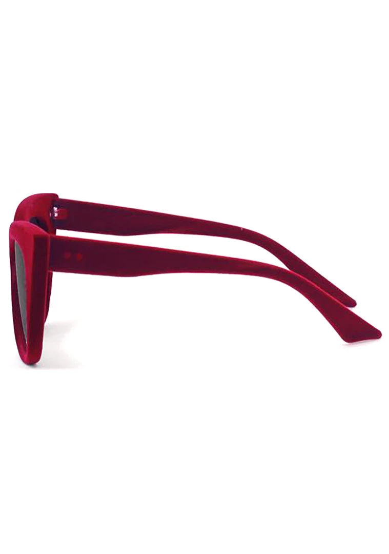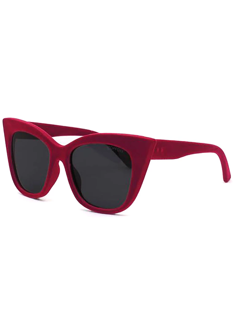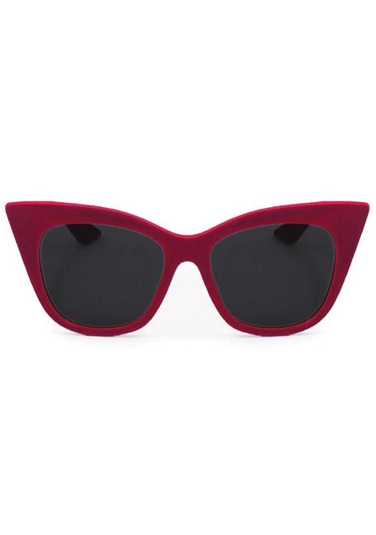 With the new Venice sunglasses from Topfoxx you’ll take your style from frump to Femme Fatal in a snap. These ultra fierce rave glasses feature a red velvet cat eye frame, black lenses, and iconic Topfoxx logo etched into the lens. When you have these baddies on your sure to steal the show.