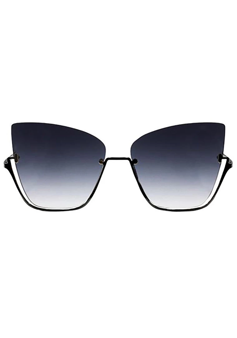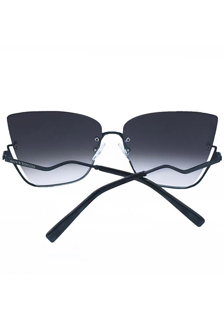 You are the ultimate sex-kitten with the new Topfoxx Raya x Vixen Sunglasses in Faded Black. This sexy festival accessory features an all-black half lens, faded black lenses, comfort cushion nose pads, and an ionic Topfoxx logo. These glasses are a great addition to any rave outfit. #mewow