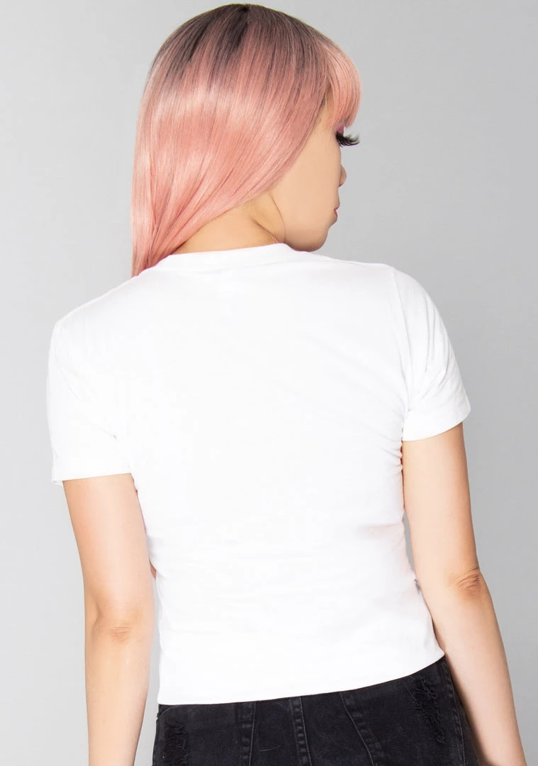 Have a chat with the Hello Kitty On The Phone Tee from Unique Vintage. These adorable festival tees feature an all white short sleeve tee with a printed front logo. #moshimoshi