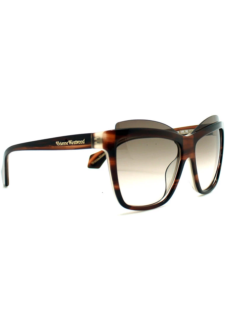 Fall in love with these stylishly finish Cat Eye sunglasses from Vivienne Westwood. These lovely cat-eye must-have festival sunglasses features brown colored acetate frame with oversized underlay brown gradient colored lens, logo shown on temple. Made in Italy.