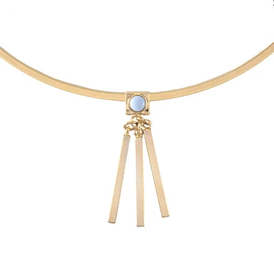 Complete your festival look with our 90’s inspired Ava Choker from Wanderlust + Co. This retro Festival Choker features a 14k gold plated hardware with soft sky blue quartz gemstone and bar fringe pendant detail on with movable choker necklace, and lobster clasp closure.