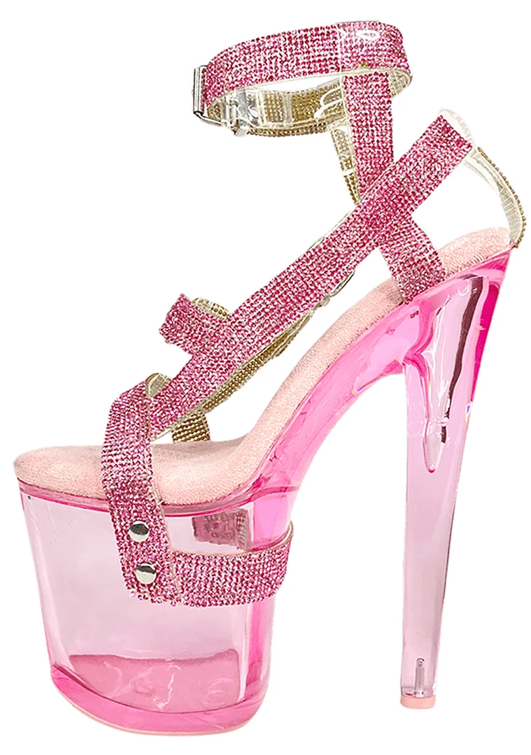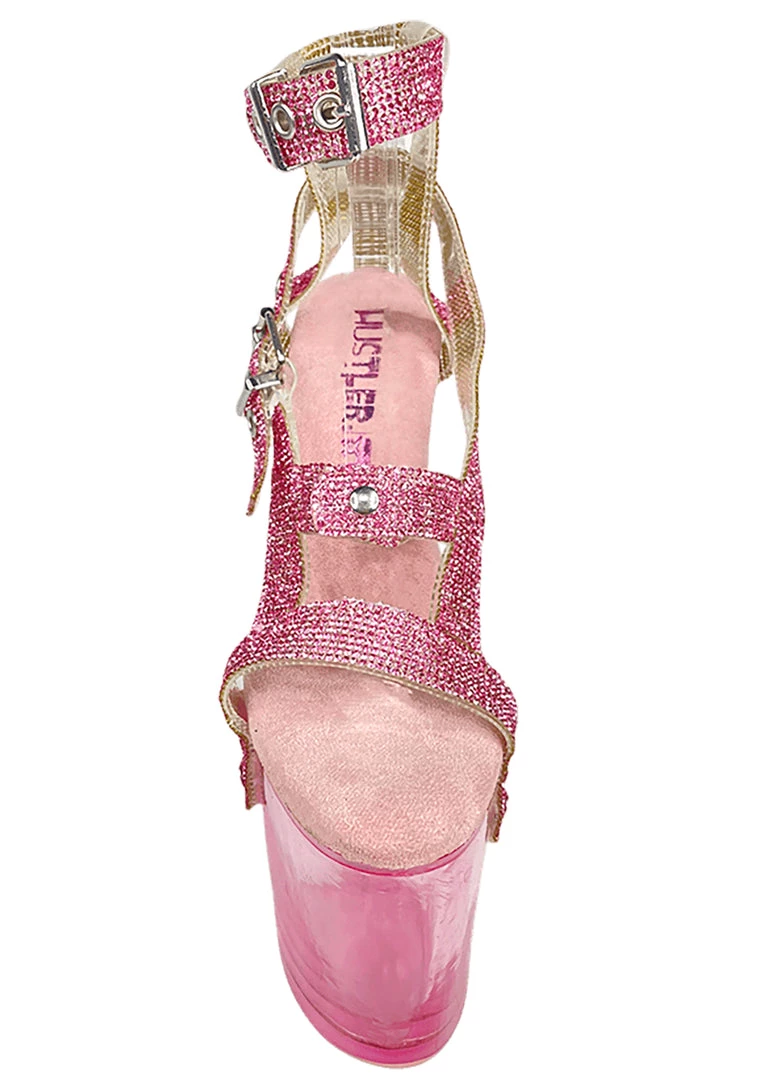 Be the sugar baby of their dreams while wearing the Hustler X Qrystal Platform Heels in Pink from Xtra by YRU. These sexy platform shoes for women feature PVC rhinestone straps on a vegan leather base, silver metallic hardware, soft baby pink vegan suede insole, and clear pink sole with a friendly reminder ’Tip Me’ on the bottoms. Go out there and get you that sugar daddy you deserve, let ’em spoil you!
