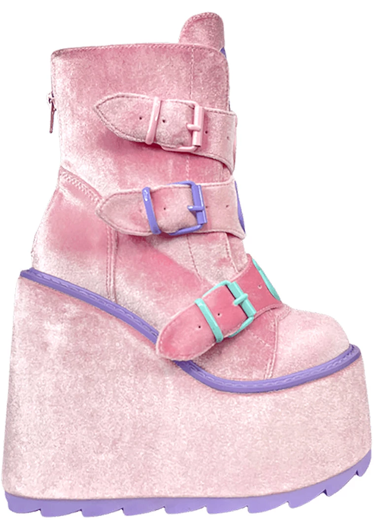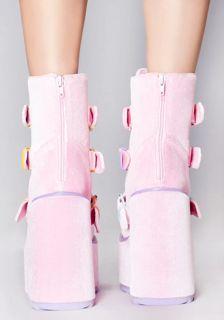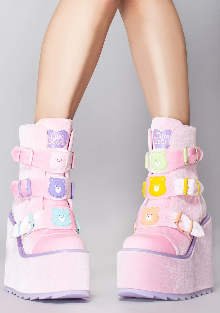 With the Dune Lo Care Bears Platform Boots from YRU, you’ll be the next Cuddle Bear! These super adorable festival boots feature a pink velvet upper with purple trim, 3 buckles upfront with silicone Care Bear details, and zipper closure up the back. Throw on these cute boots and everyone is going to want to snuggle up with you!